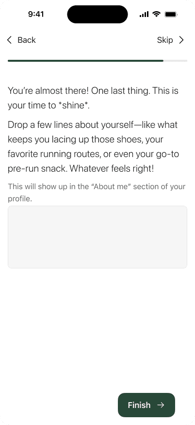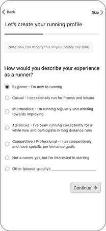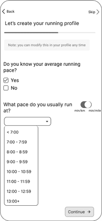 Specify your running preferences and goals to build your profile and tell other runners about yourself