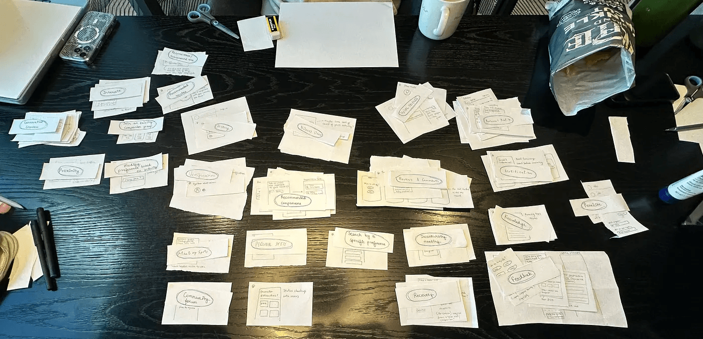 After thoroughly exploring ideas through sketches and critiquing, we prioritized for a minimum viable product: Recommended Runs. We shifted our designs to recommending runs rather than individual runners to focus on compatibilities that are important for running, as well as to enhance feelings of safety and comfort by allowing group runs.