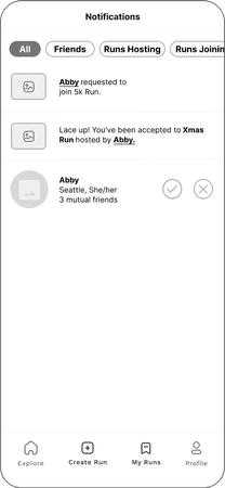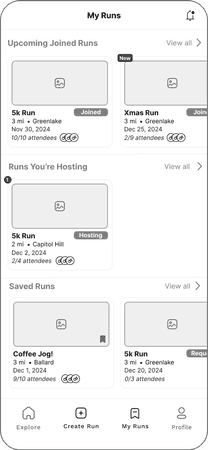 View your runs to keep track of notifications and runs you are joining, hosting, and have saved